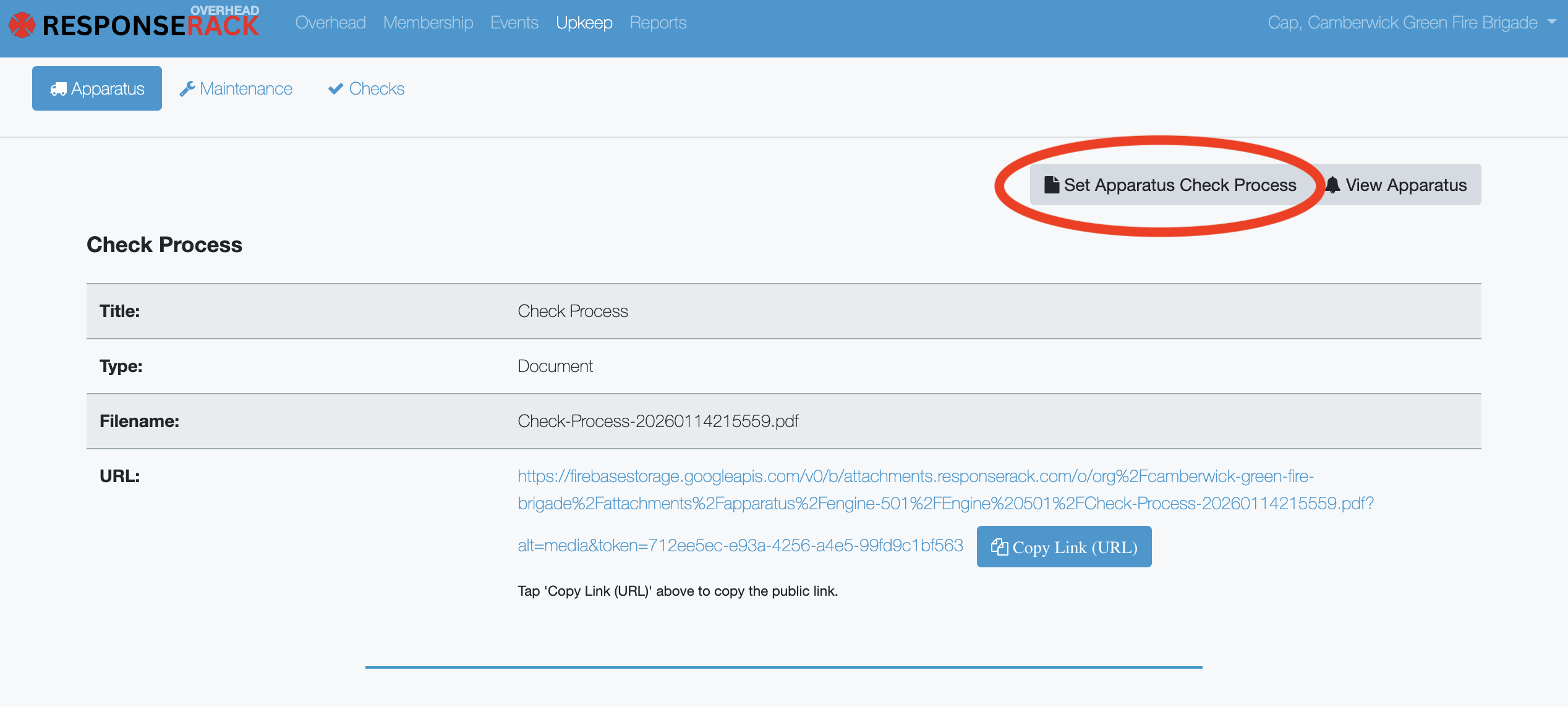 Once you've uploaded the attachment, select it, and chose "Set Apparatus Check Process" to set it as the current check process for this apparatus.